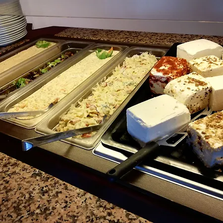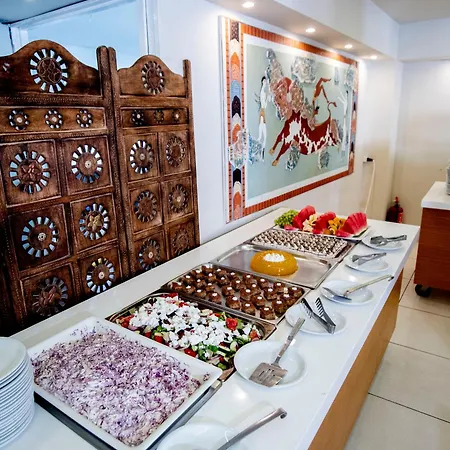 Es wird ein kostenloses Frühstücksbuffet im Restaurant serviert. Es gibt zudem eine hoteleigene Snackbar DownTown Bar. Das Restaurant Apla & Nostima ist circa 100 Meter von hier entfernt und bietet Gerichte der europäischen Küche.
