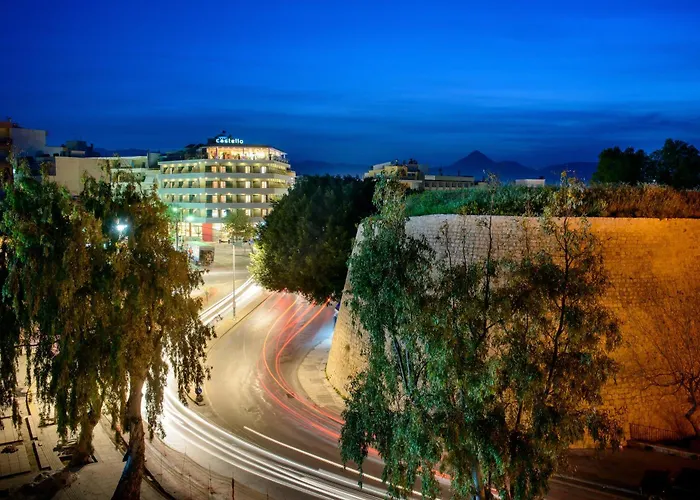 Des vues spectaculaires sur la ville depuis votre chambre, avec des couchers de soleil magnifiques sur la mer Égée, des installations de spa de qualité supérieure, des restaurants gastronomiques, une décoration d'intérieur élégante et un service amical : ce sont toutes des caractéristiques que vous êtes sûr de trouver dans un hôtel avec vue impressionnante sur Héraklion.