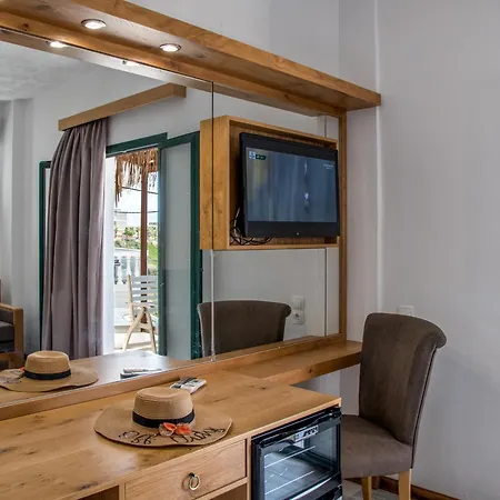 Guests can enjoy a buffet breakfast daily. Greek meals are supplied at the Greek restaurant. The snack bar offers refreshing drinks along with WiFi and a TV. The café Coffee Island is less than 350 metres away.
